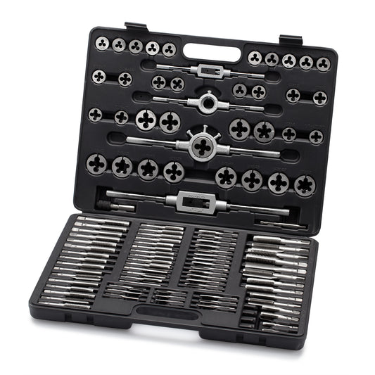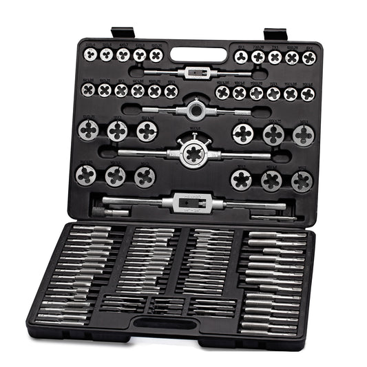 Segomo Tools 110 Piece Hardened Alloy Steel SAE Tap And Die Threading Tool Set With Free Cutting Fluid - TD110SAE-CF