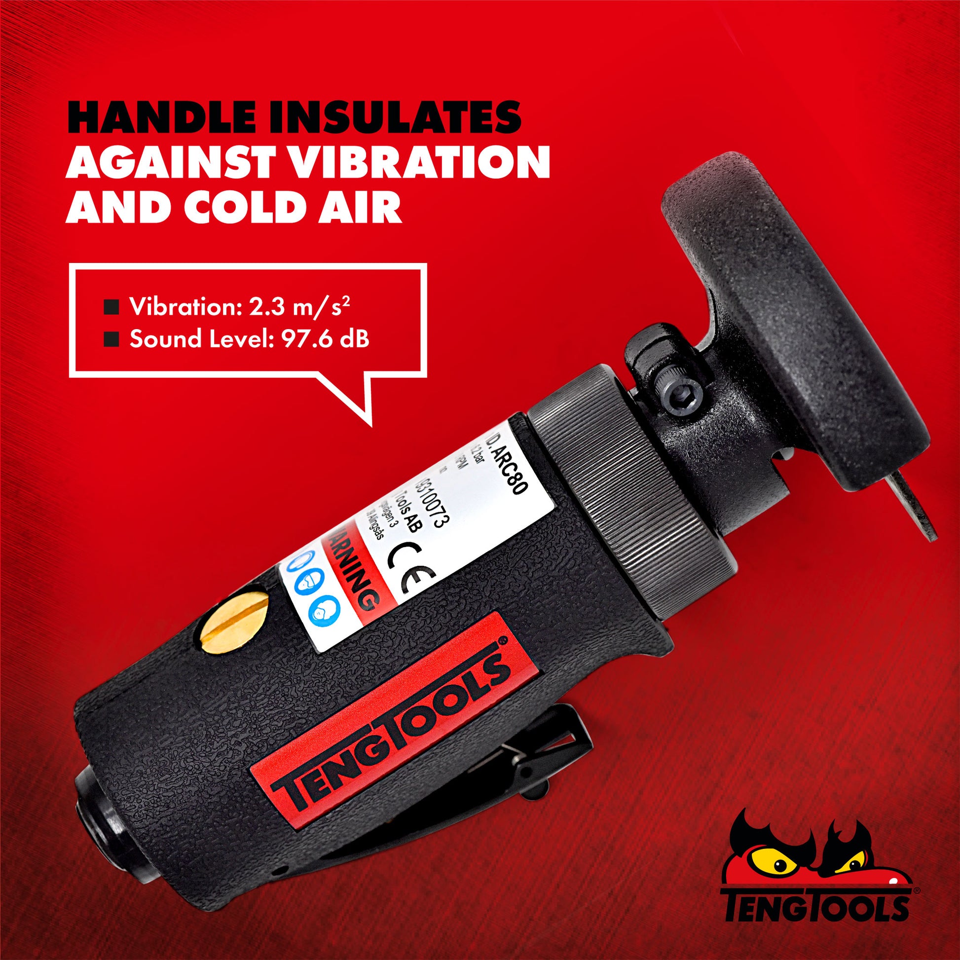 Teng Tools Herramienta de corte de aire neumática ergonómica reversible de alta velocidad con protector de seguridad - ARC80