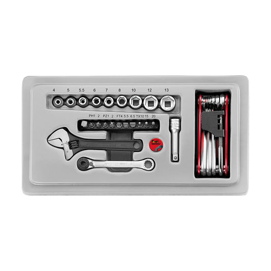 Teng Tools Juego de espuma EVA con trinquete métrico de 37 piezas, doble extremo abierto y llave de doble anillo - TTESP37