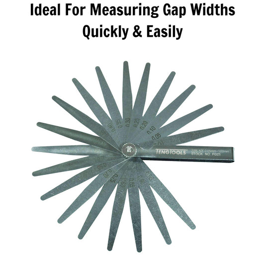 Teng Tools Juego de galgas de espesores de calidad profesional de 20 hojas para medir el ancho/grosor del espacio - FG21