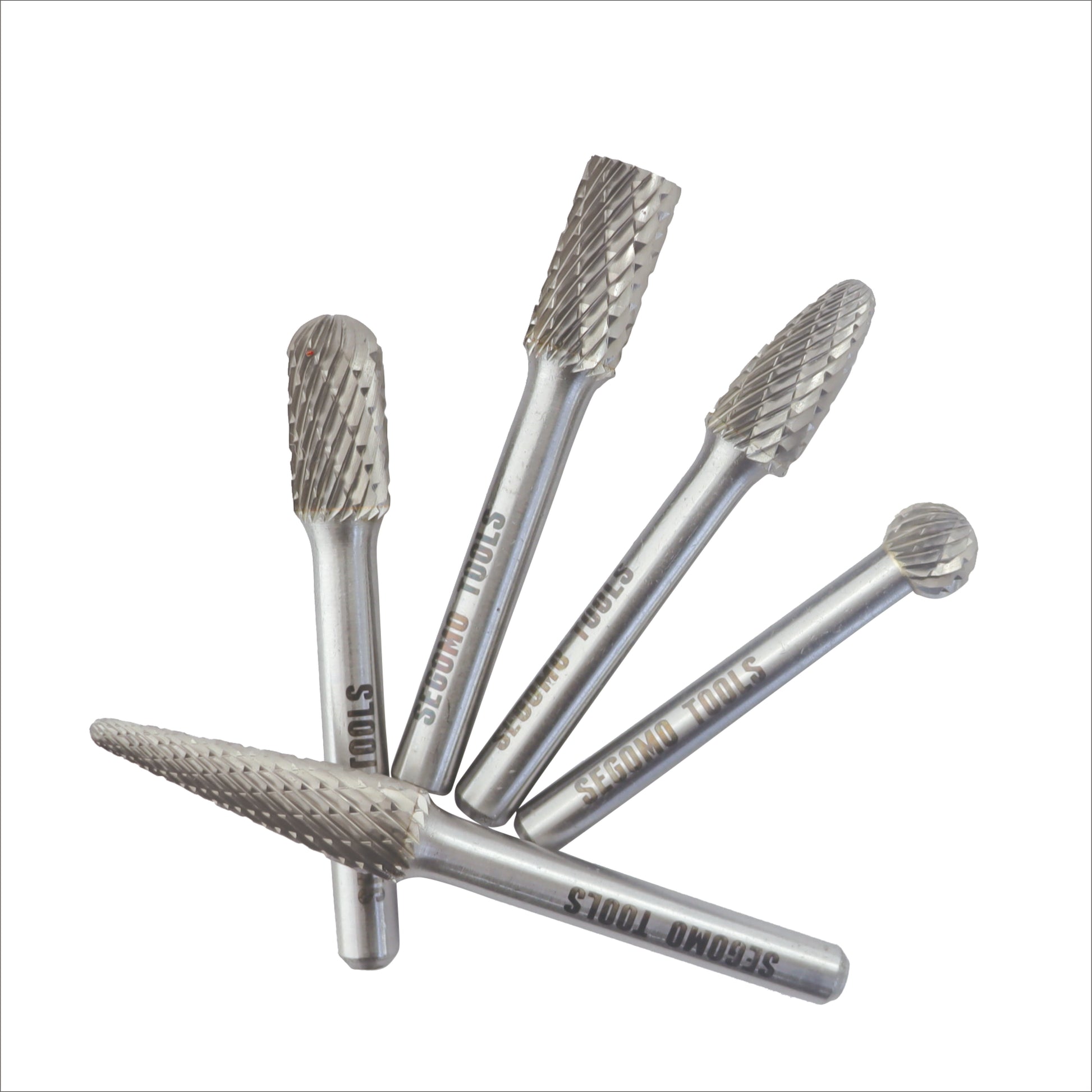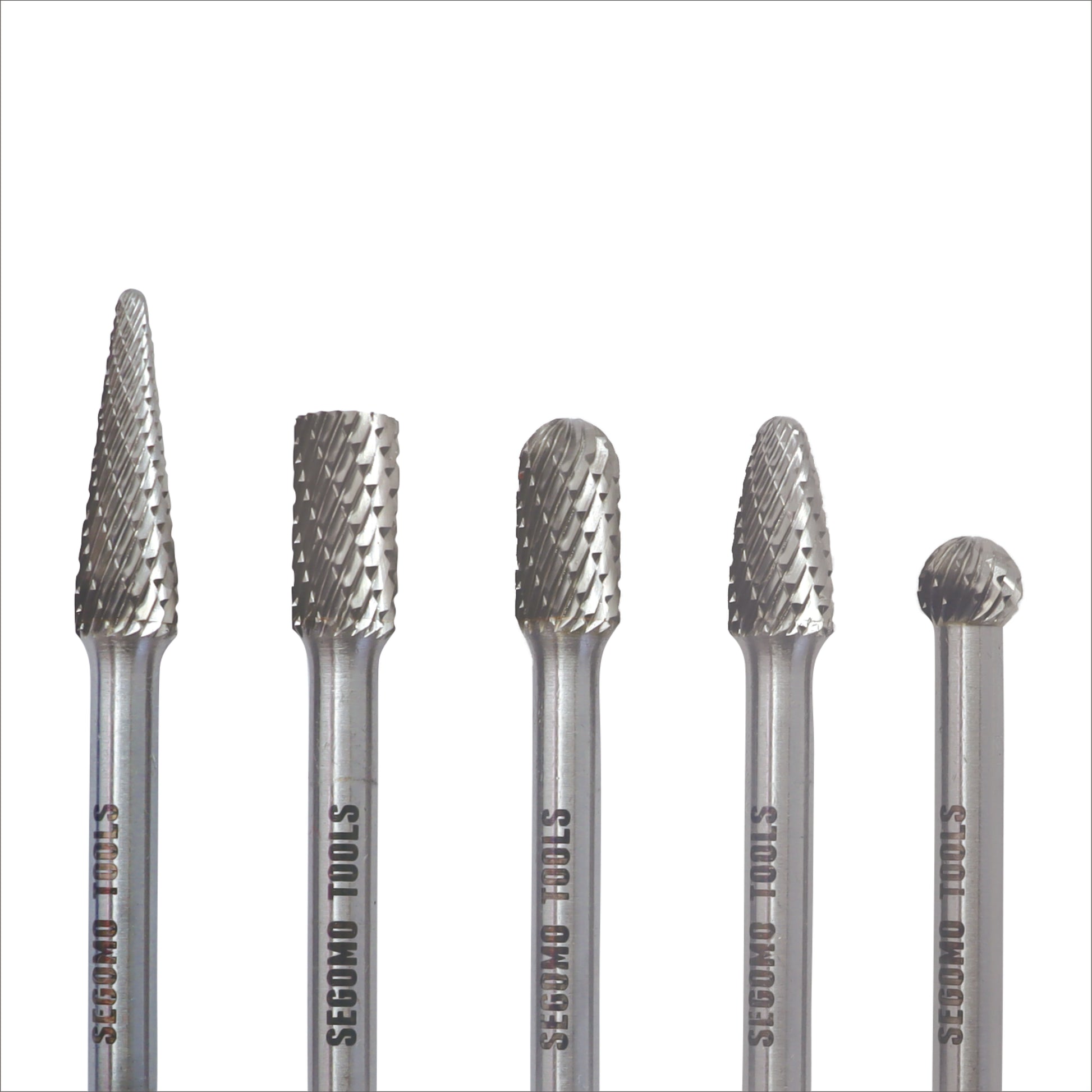Segomo Tools Juego de fresas rotativas de carburo de tungsteno de doble corte de 5 piezas para rectificar, desbarbar metales, tallar, taladrar y grabar - CB005
