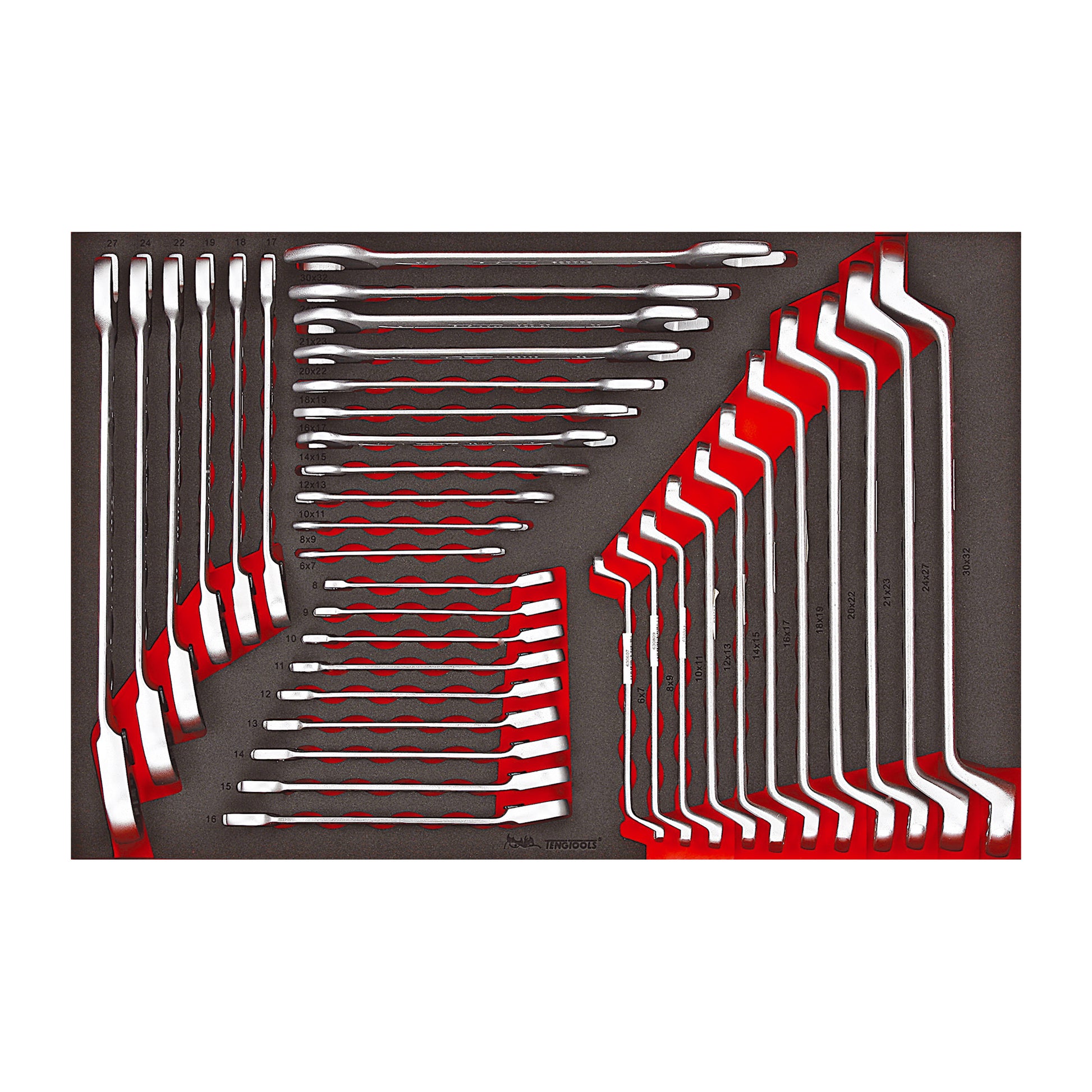 Teng Tools Juego de espuma EVA con trinquete métrico de 37 piezas, doble extremo abierto y llave de doble anillo - TTESP37
