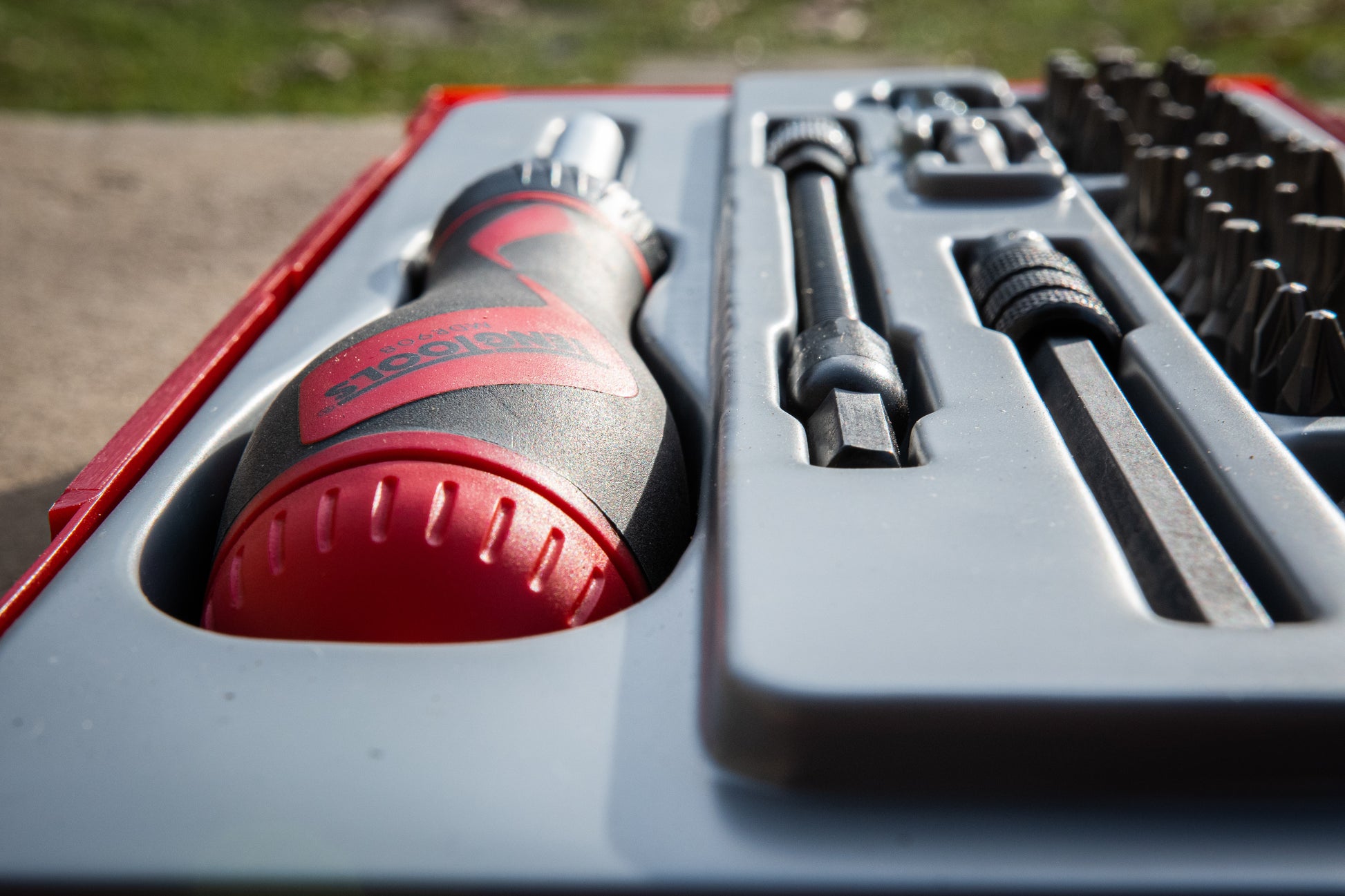- Destornillador de puntas con trinquete con imán que sujeta tanto el tornillo como la punta
