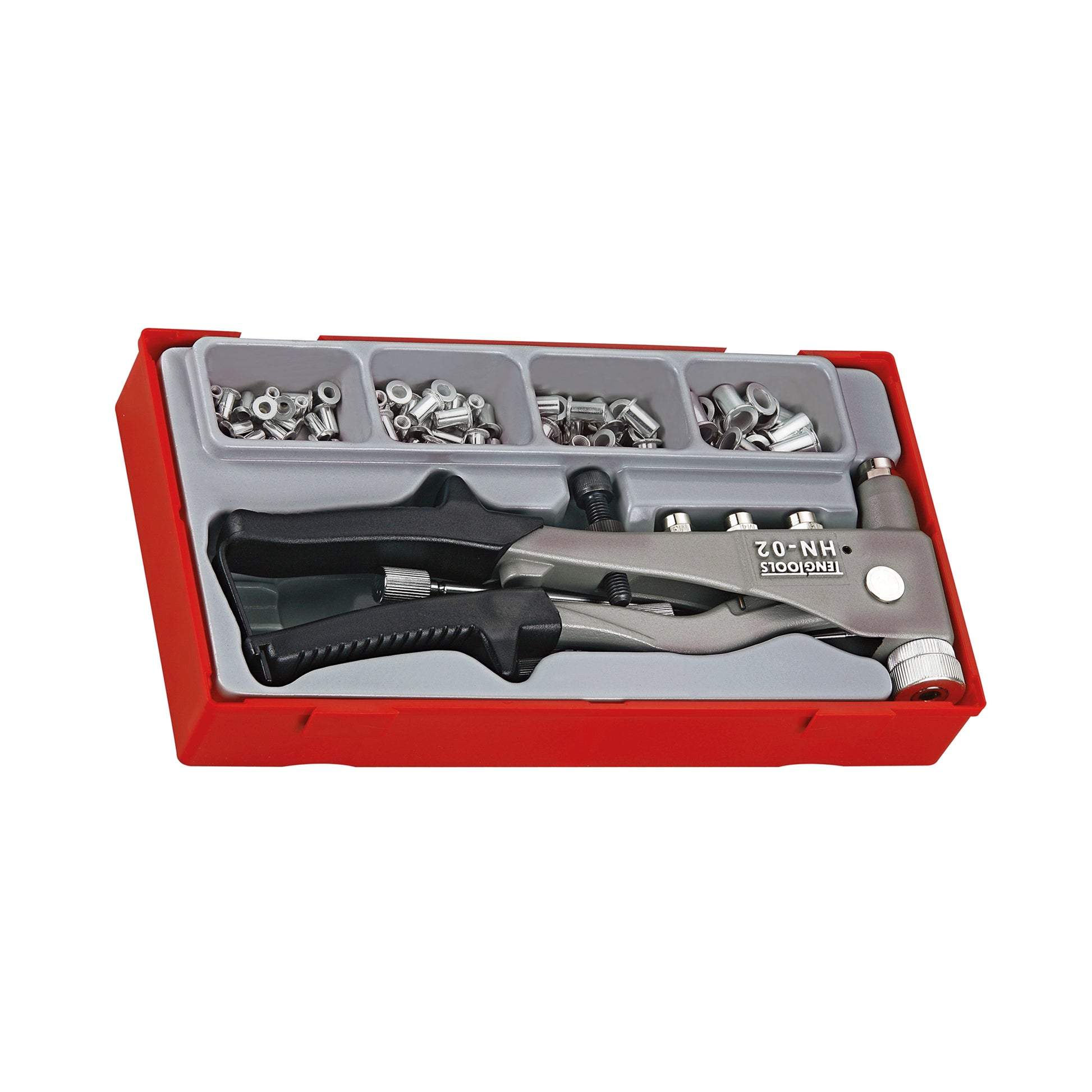 - Herramienta para colocar tuercas: con cuatro mandriles de cambio rápido (M3 x 0,5, M4 x 0,7, M5 x 0,8, M6 x 1,0)