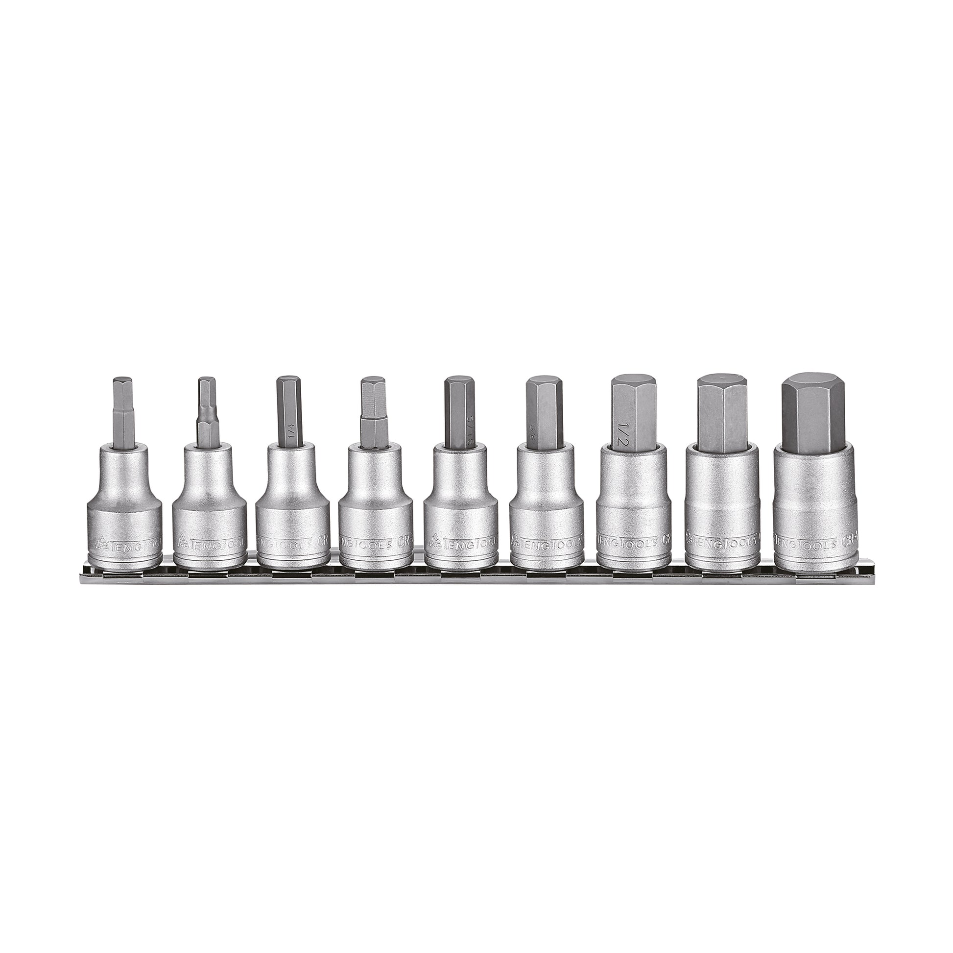 Teng Tools Juego de llaves de vaso con puntas hexagonales SAE de 9 piezas con accionamiento de 1/2 pulgada (3/16 pulgada - 5/8 pulgada) - M1209AF