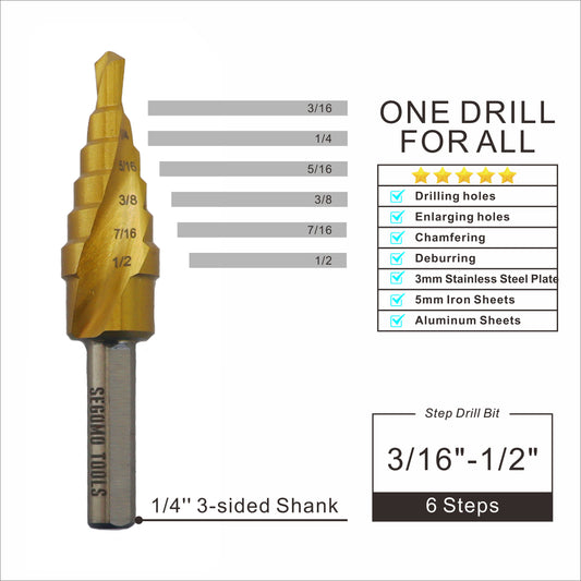 Segomo Tools Forets étagés industriels en acier rapide (HSS) M35 à 2 cannelures hélicoïdales avec revêtement en titane