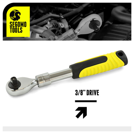 Segomo Tools Cliquet extensible réversible robuste à entraînement 3/8 pouces 72 dents (9" à 13") - 3800EXT
