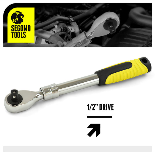 Segomo Tools Cliquet extensible réversible robuste à entraînement 1/2 pouce 72 dents (12" à 17") - 1200EXT