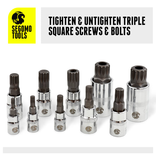Segomo Tools Jeu de 10 douilles à embout cannelé triple carré métrique XZN à entraînement mixte (4 mm-18 mm) - XZN10