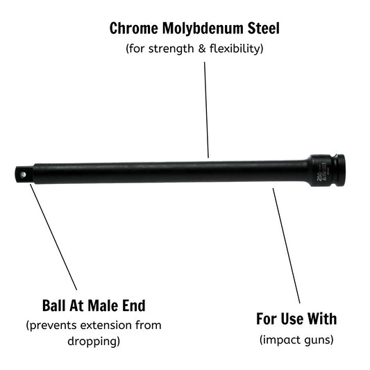Teng Tools Barre d'extension d'impact en molybdène chromé DIN de 10 pouces de long à entraînement de 1/2 pouce | Rallonge de prise | Outil mécanique | Outil à main - 920023N