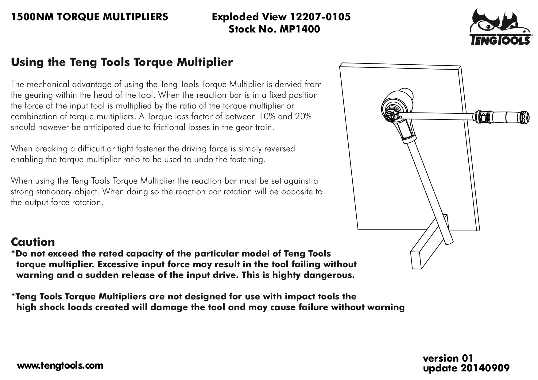 Teng Tools Multiplicateur de couple 1/2" femelle 3/4" mâle Max 1400 Nm - MP1400