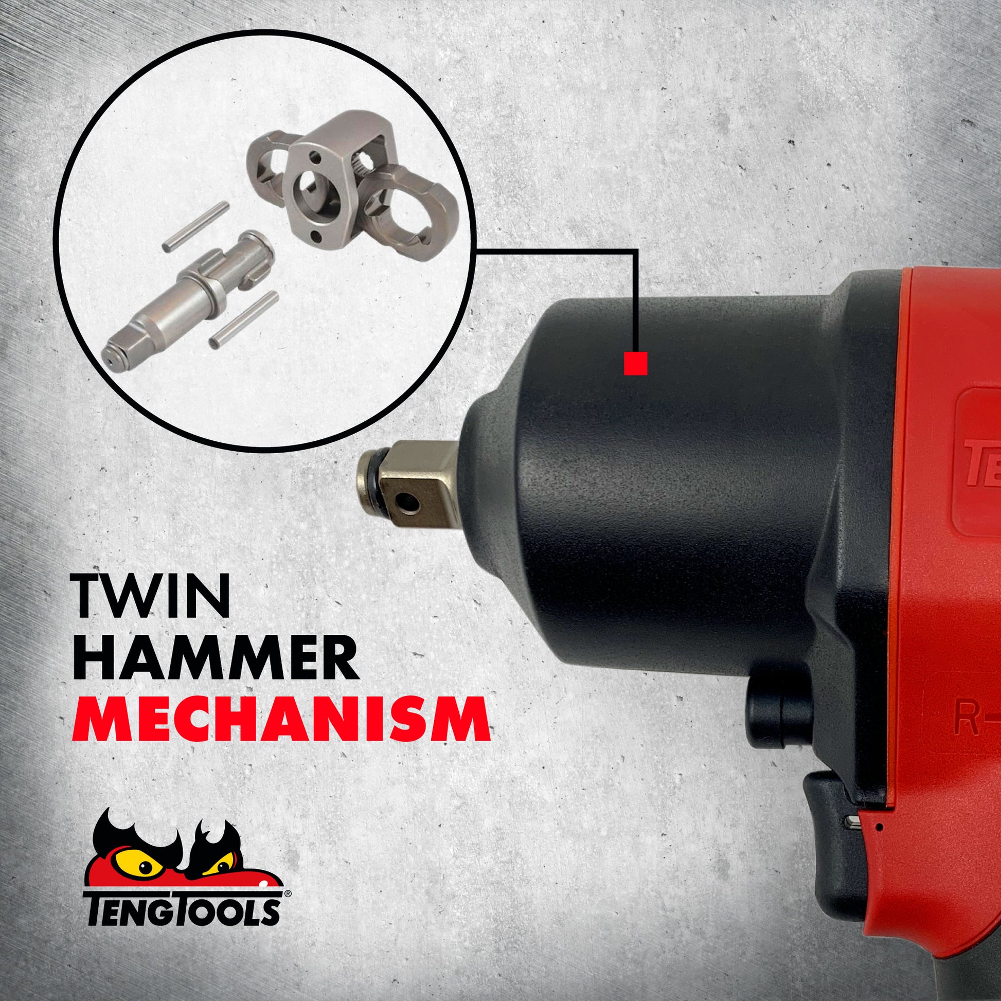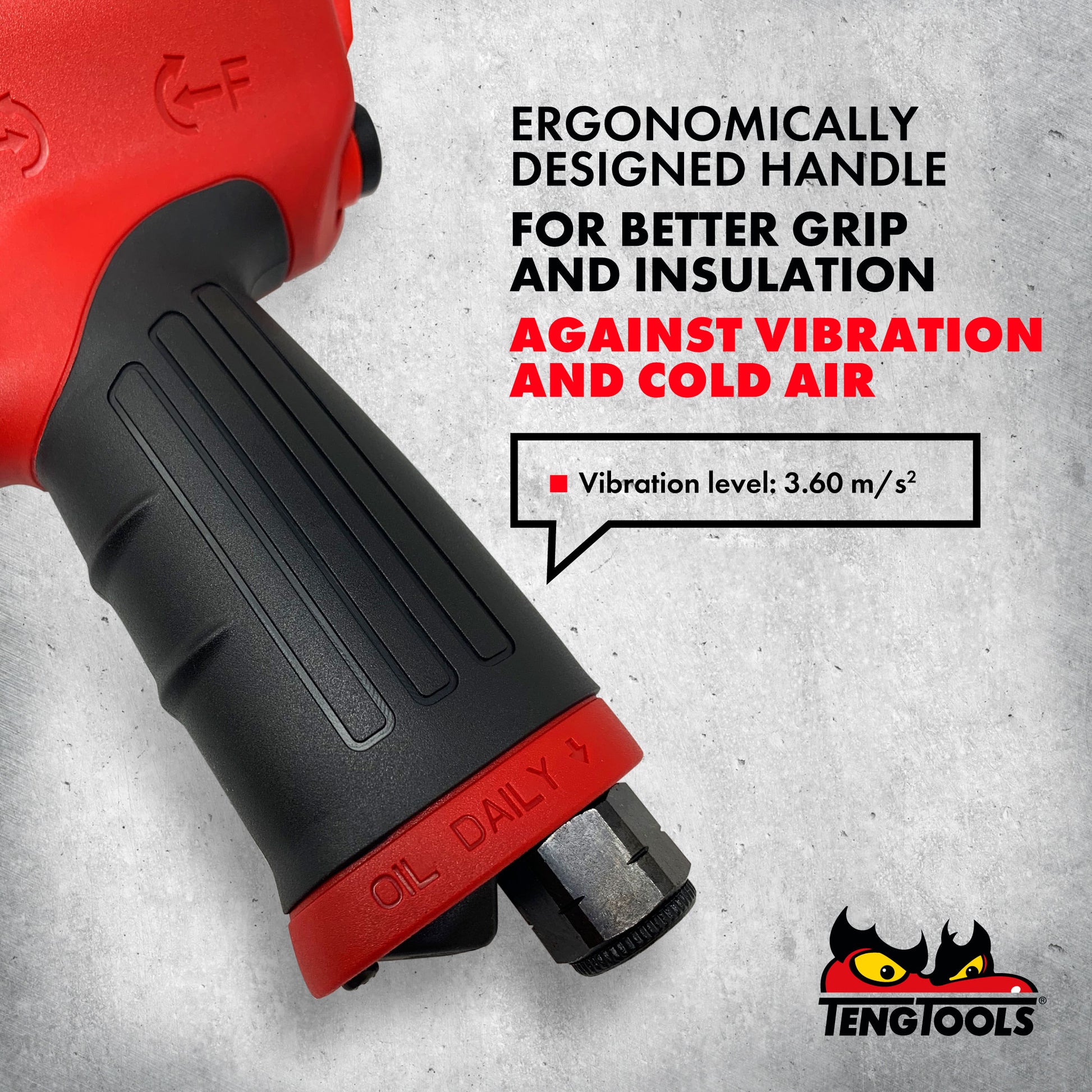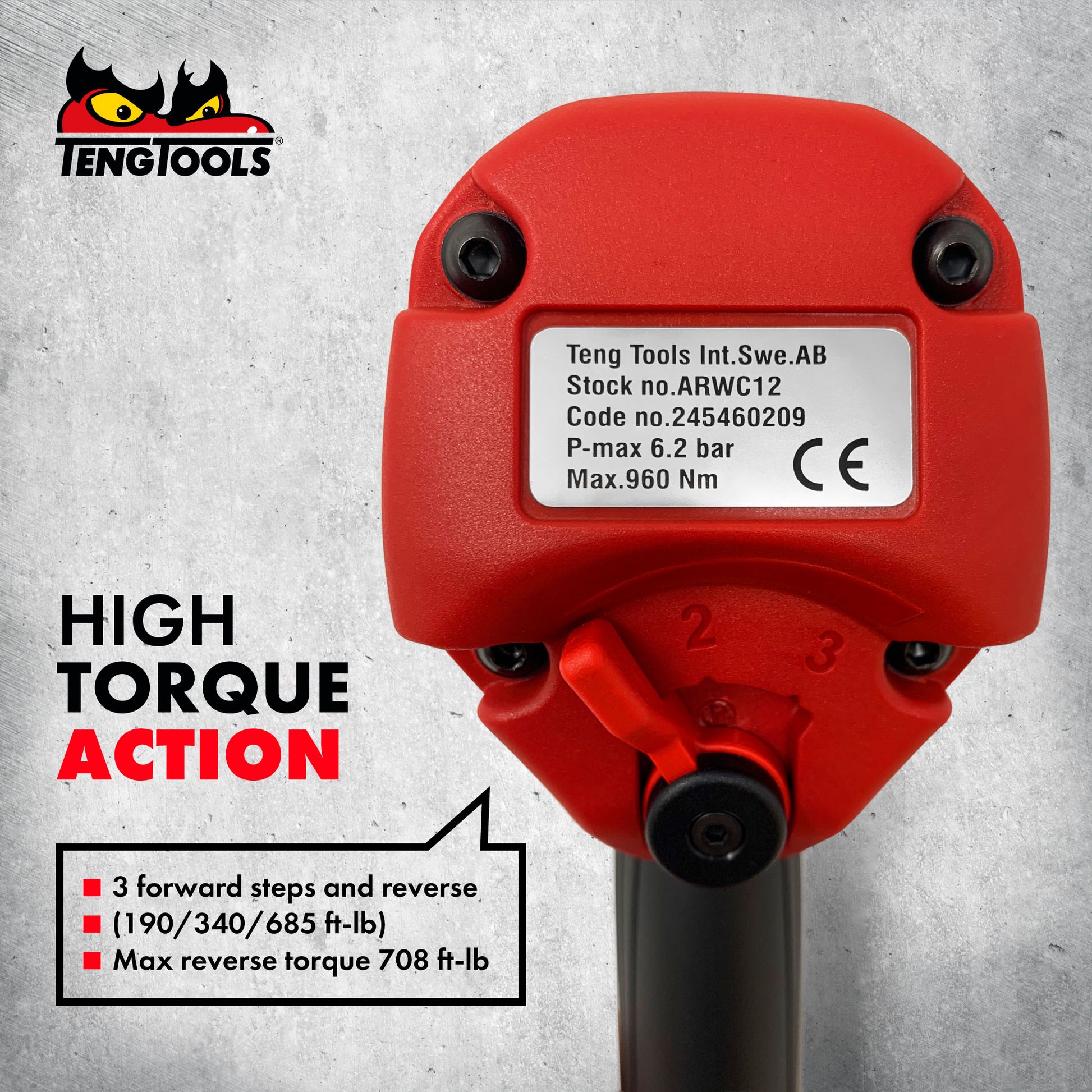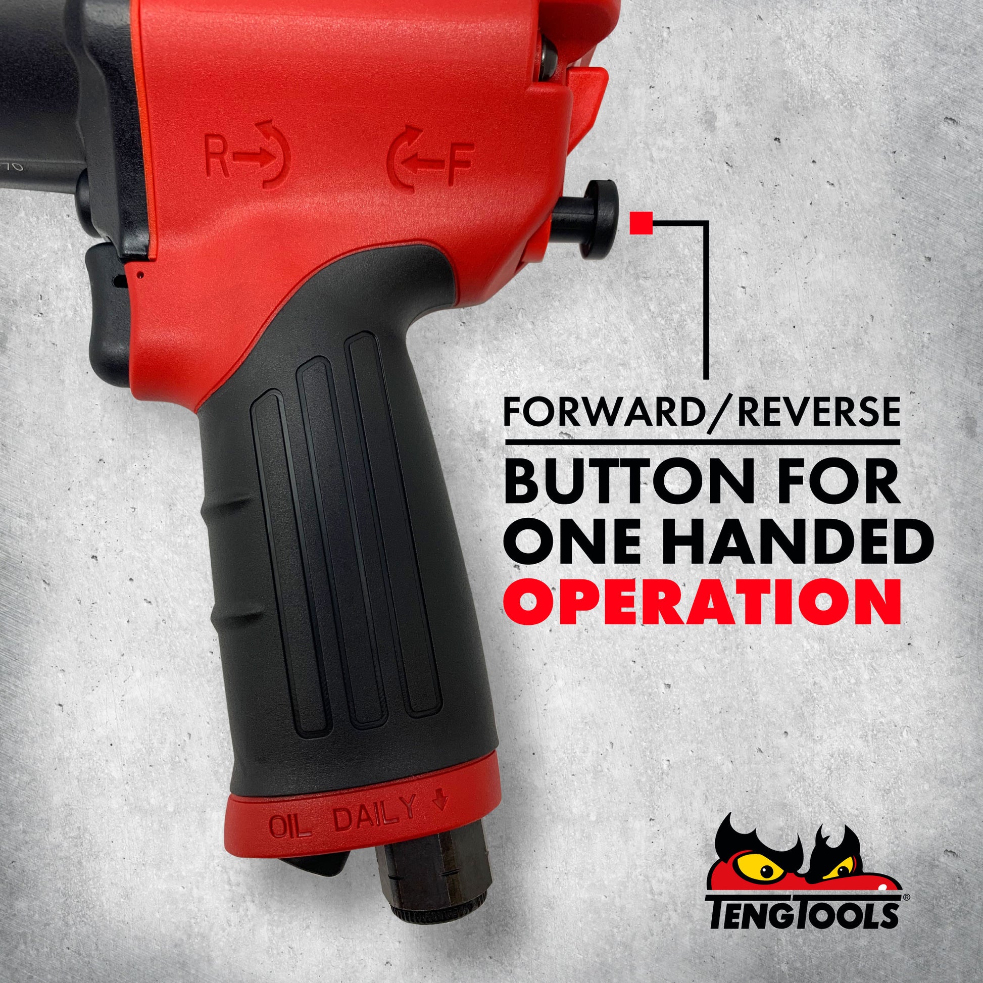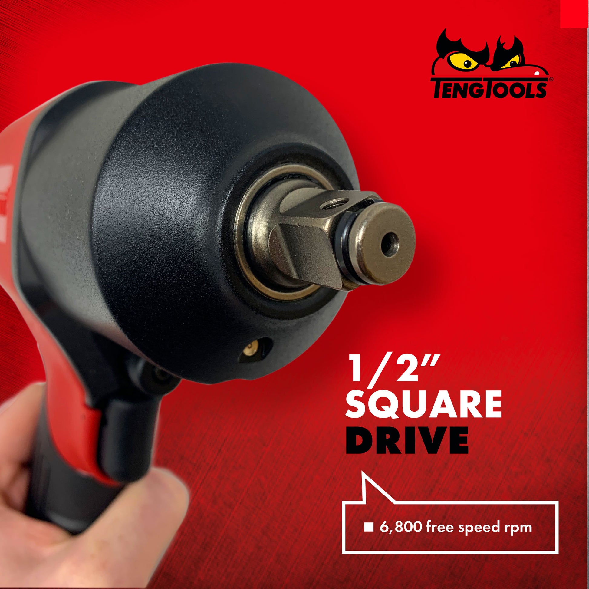 Teng Tools Pistolet à clé à chocs pneumatique composite réversible à couple élevé à entraînement carré de 1/2 pouce - ARWC12