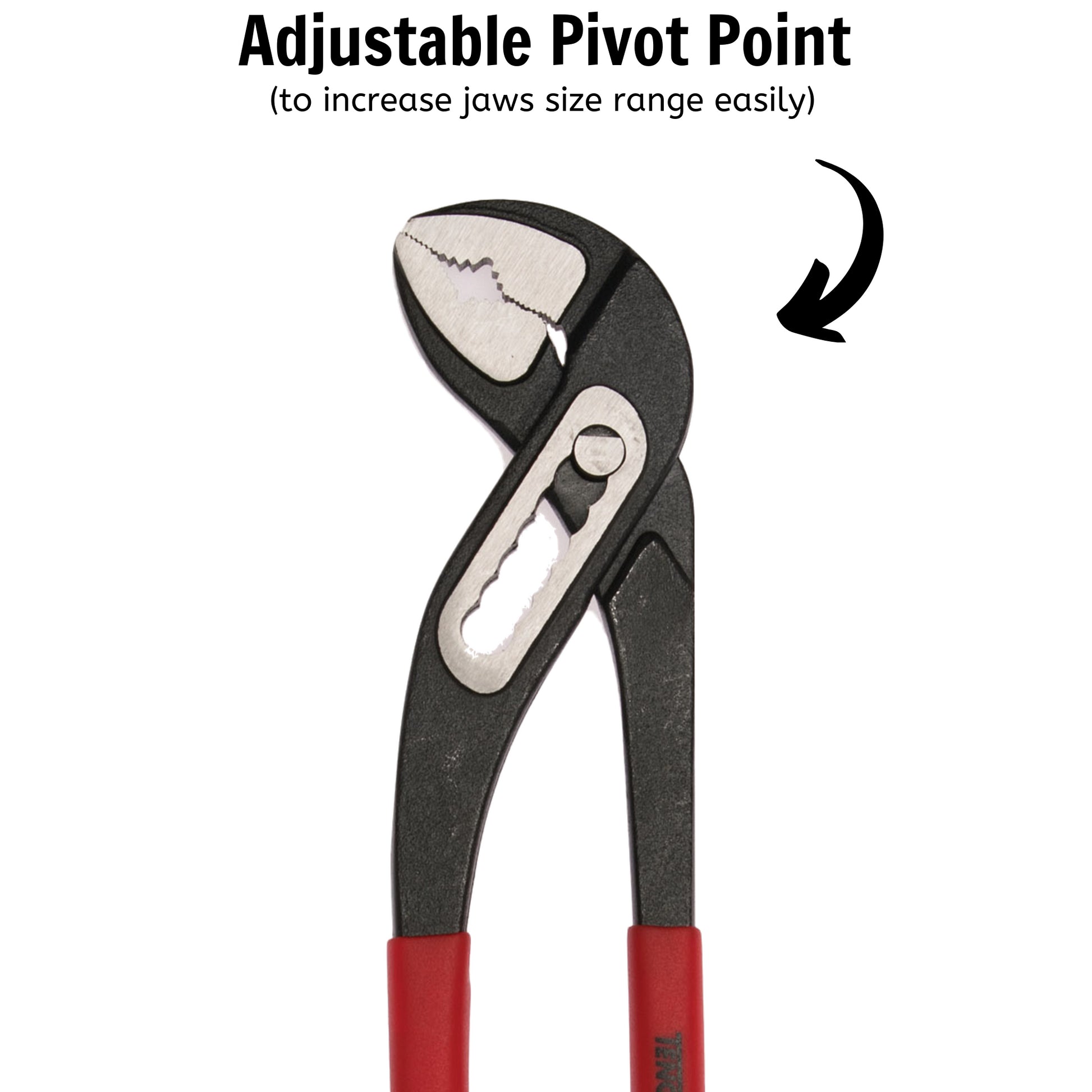 - Pince à joint coulissant de 10 pouces avec mâchoires dentelées et poignée pour tuyau pour une utilisation polyvalente en plomberie et autres applications