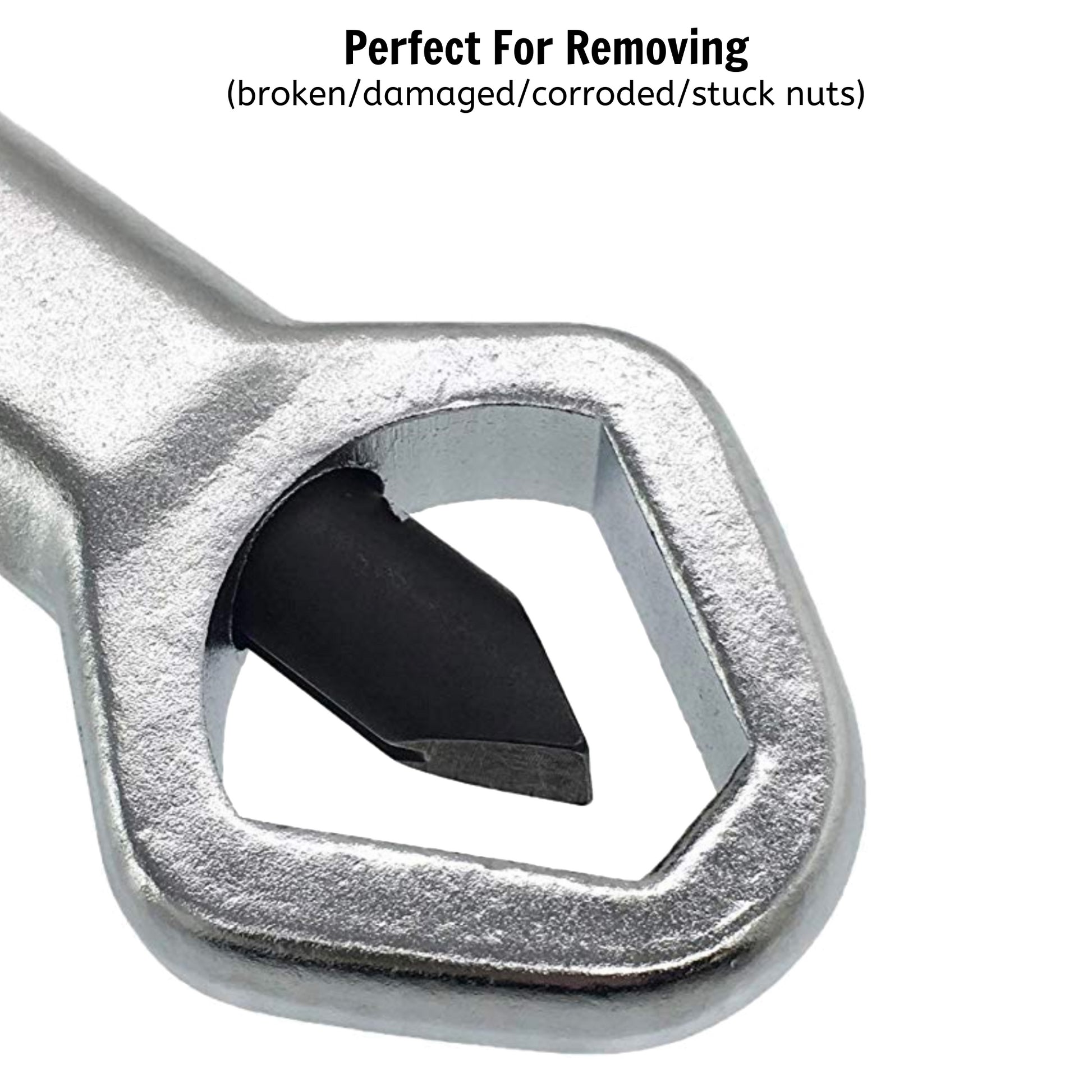 - L'outil robuste divise l'écrou pour un retrait facile