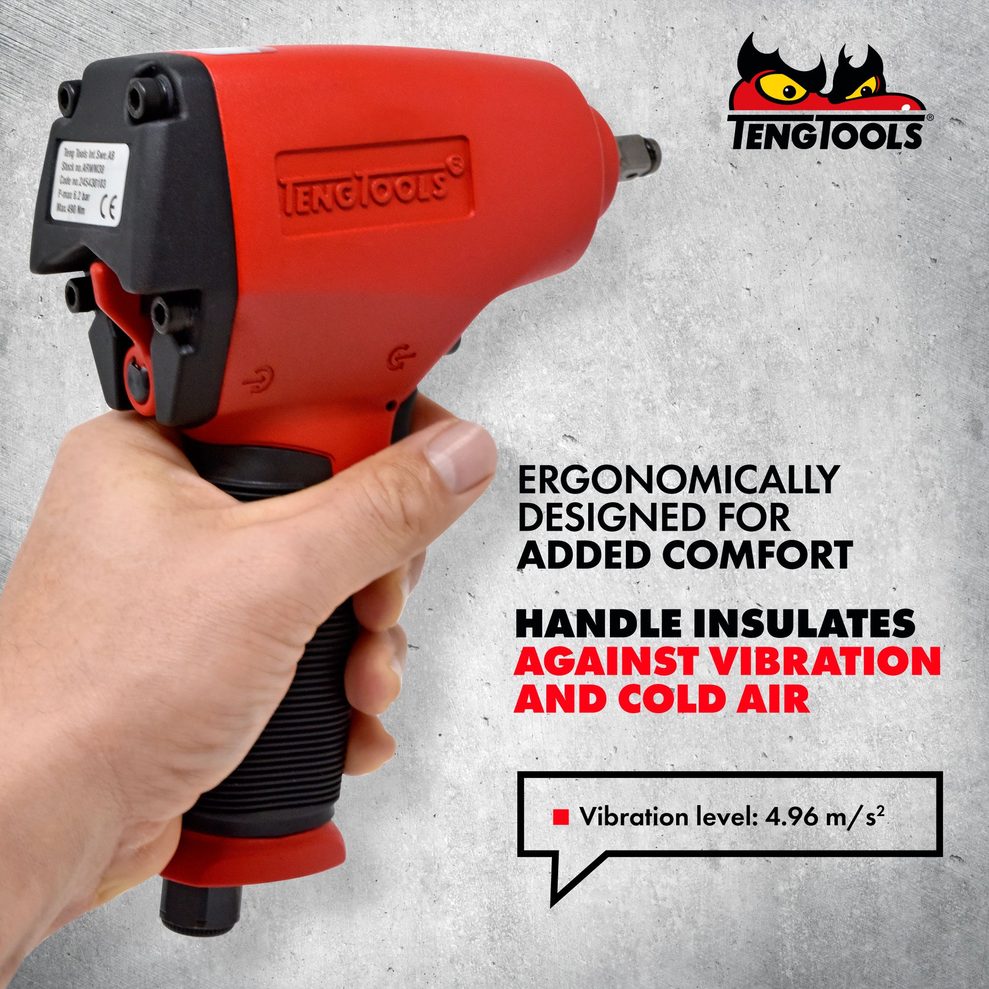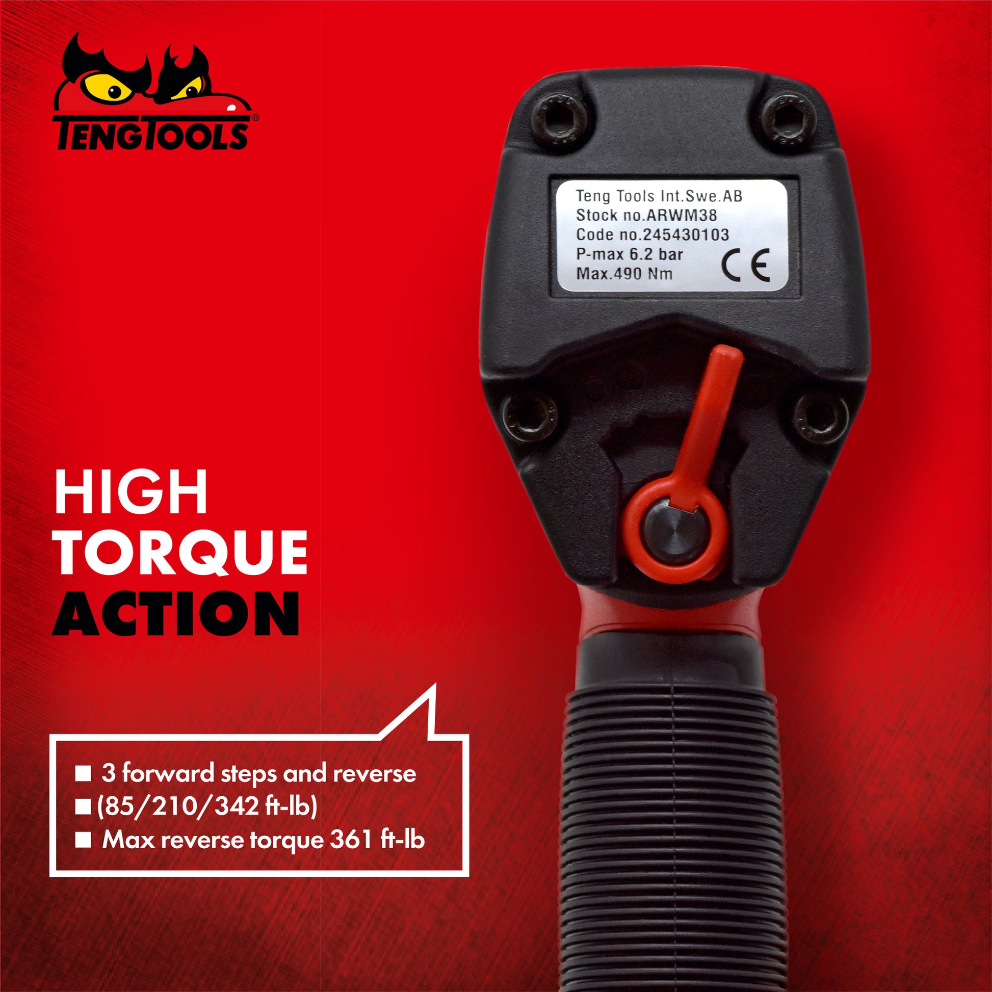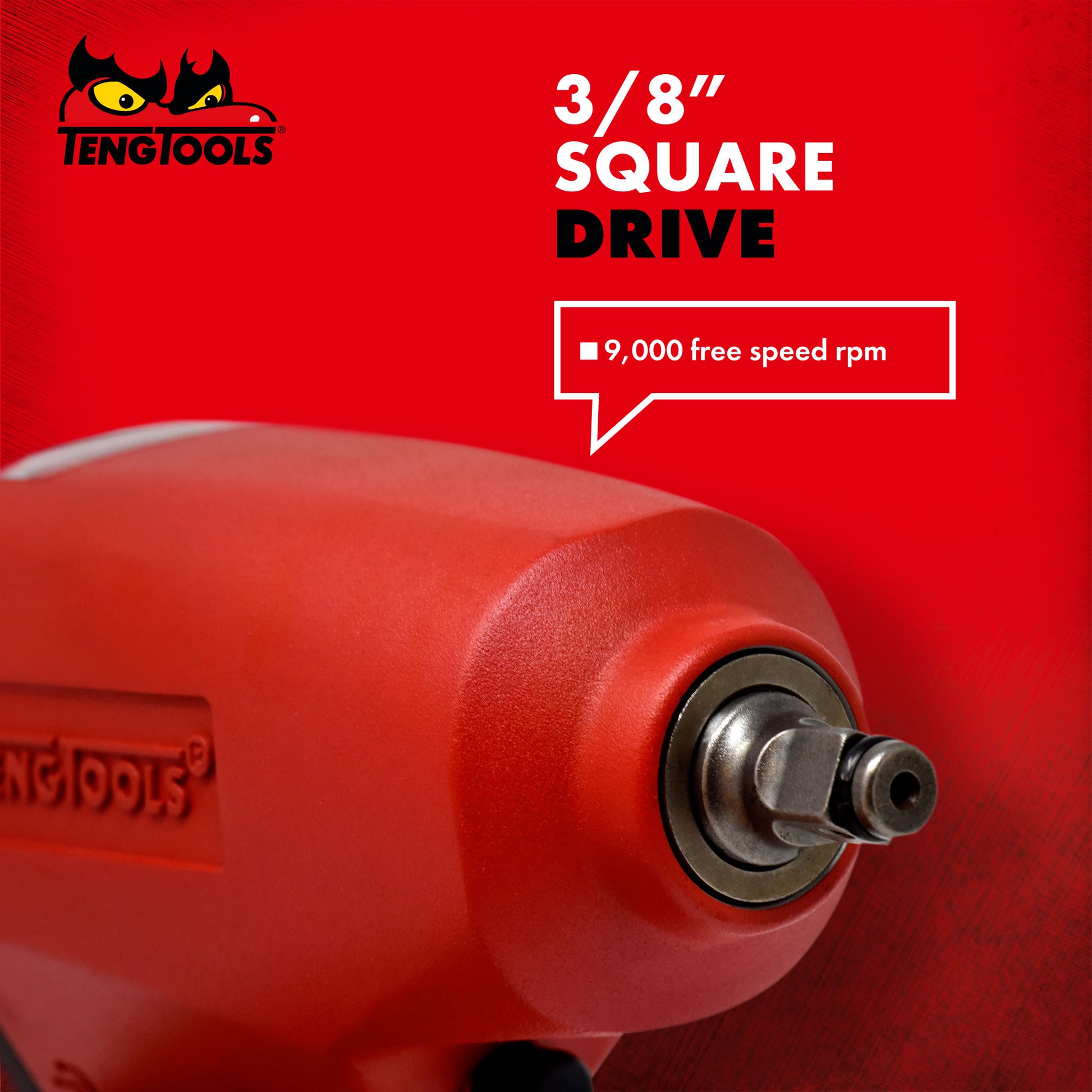 Teng Tools Pistolet à clé à chocs pneumatique en aluminium à couple élevé réversible à entraînement carré de 3/8 pouces - ARWM38