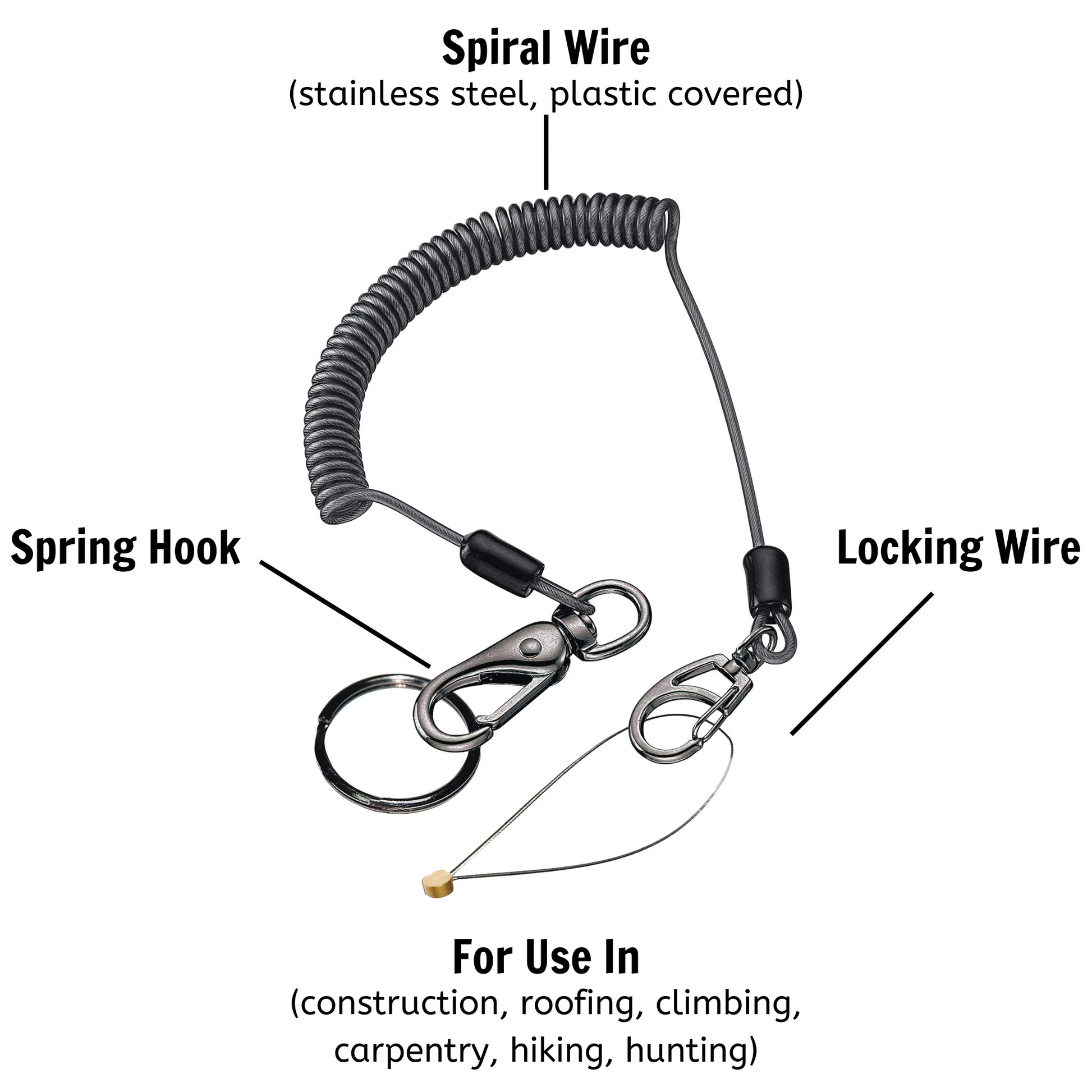 - Les caractéristiques comprennent un fil de verrouillage, un crochet à ressort et un fil spiralé en acier inoxydable (diamètre 3,0 mm) recouvert de plastique (diamètre 1,0 mm).