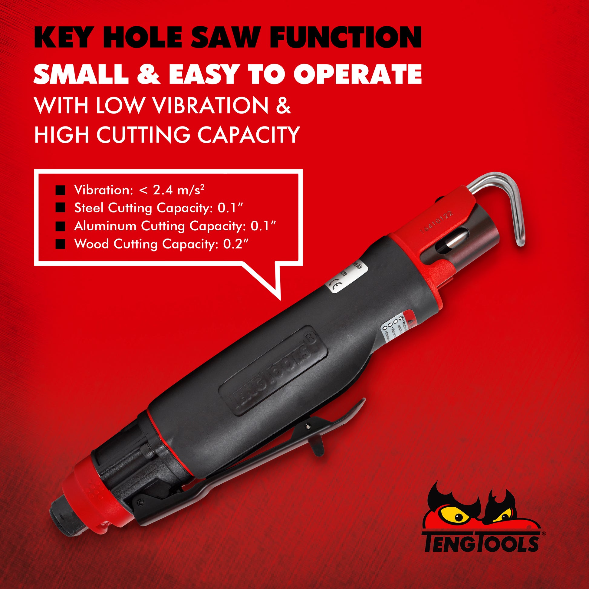Teng Tools Scie pneumatique à trou de serrure petite et droite (pour acier, aluminium, cuivre, plastique, bois) - ARS01
