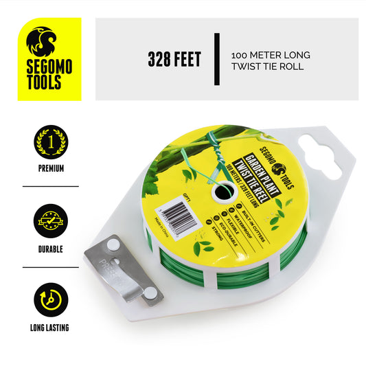 Segomo Tools Bobine torsadée polyvalente pour plantes de jardin de 328 pieds (100 mètres) de long avec cutter - GPT1