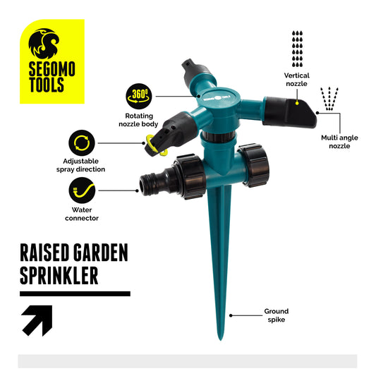 Segomo Tools Système d'irrigation par aspersion d'eau de pelouse de jardin rotatif surélevé à 360 degrés - GSR1