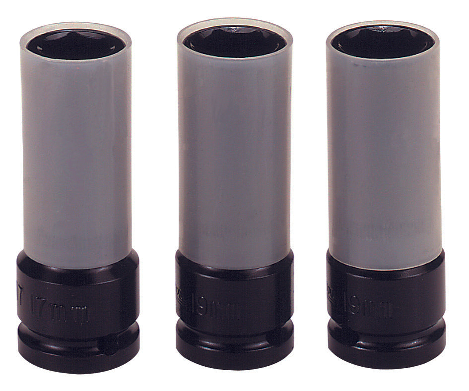 - Douilles à impact métriques profondes à 6 pans, 1/2 pouce, 17 mm, 19 mm et 21 mm.