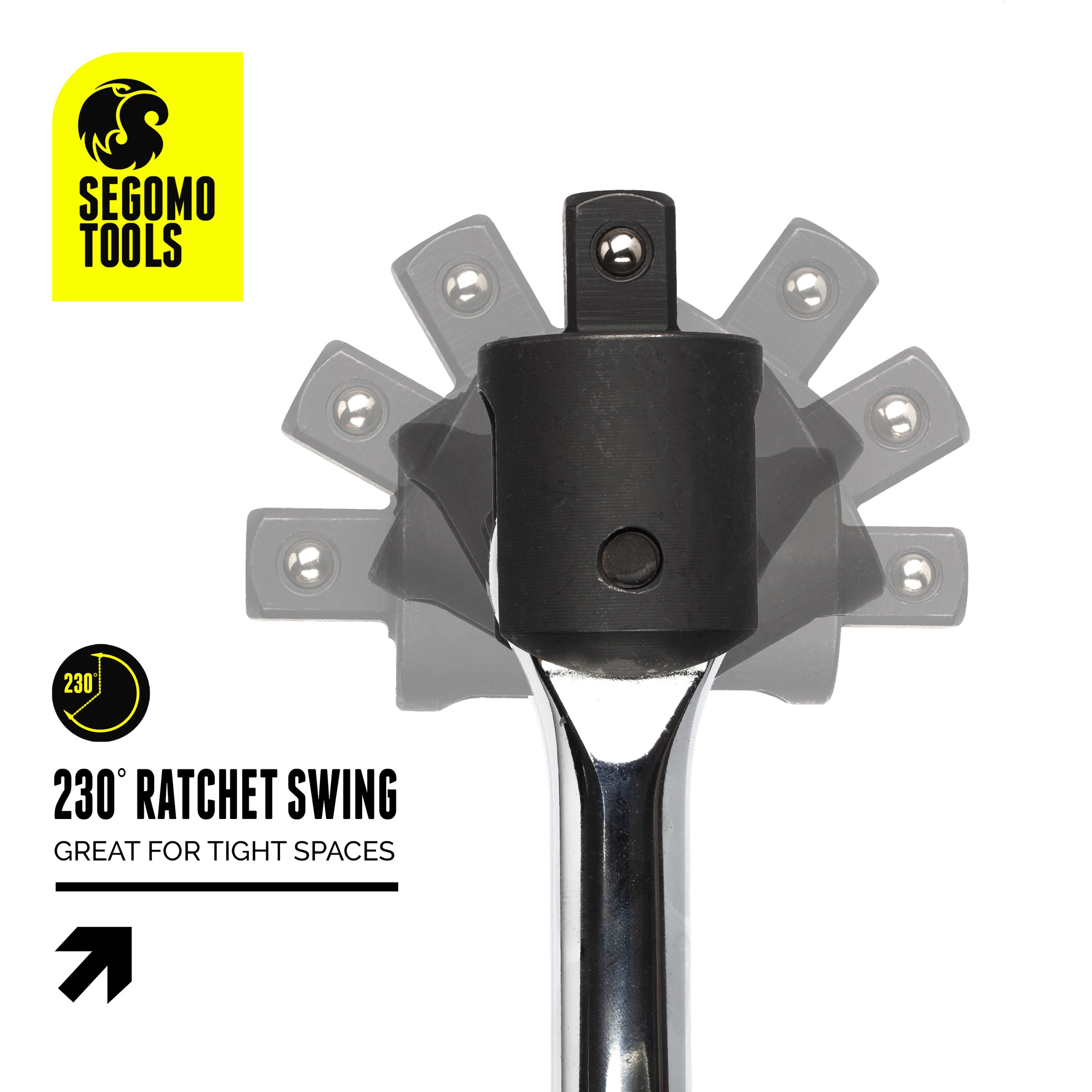 Segomo Tools 1/2 Inch Drive 17 Inch Chrome Vanadium Breaker Bar with 230 Degree Pivoting Chrome Molybdenum Head - S1201