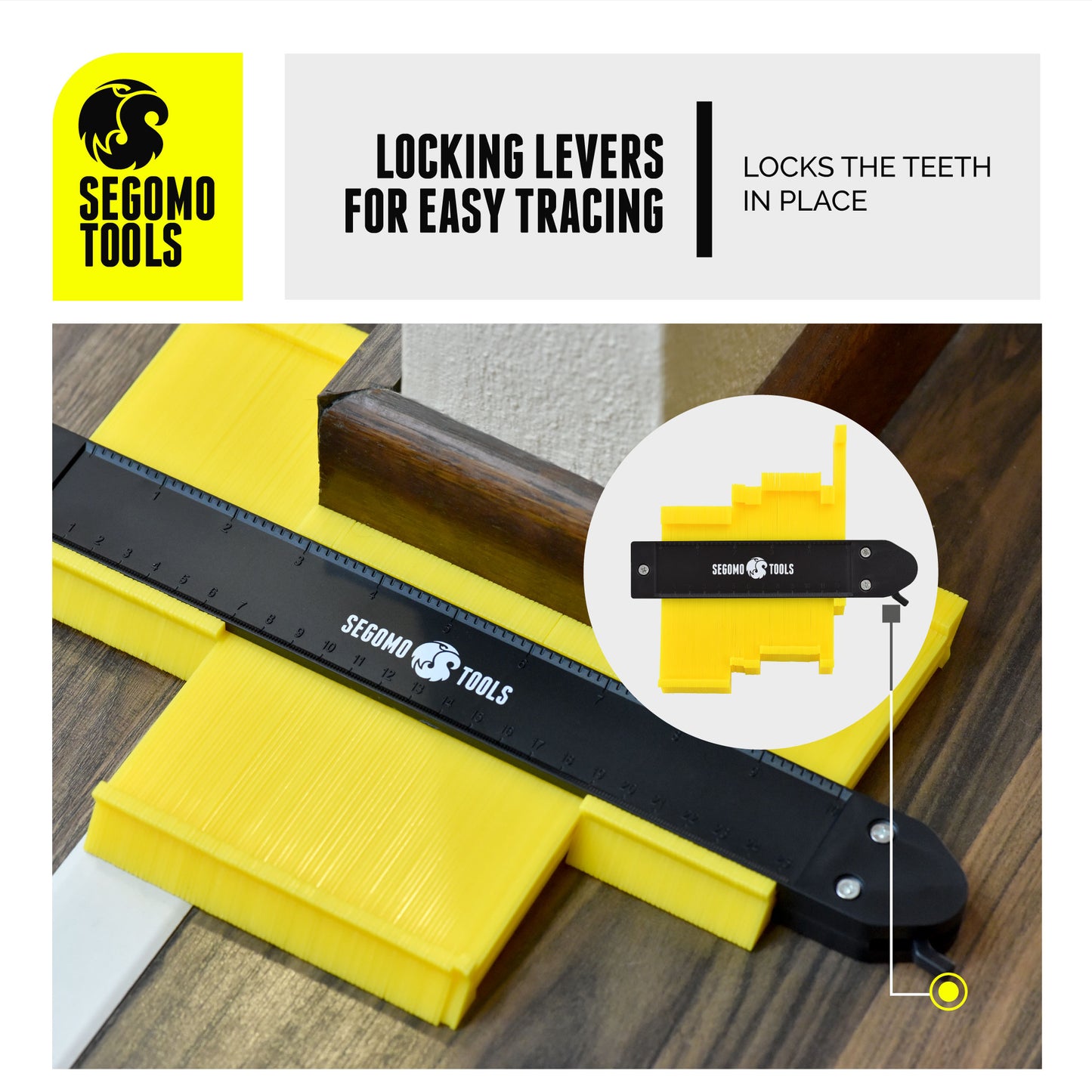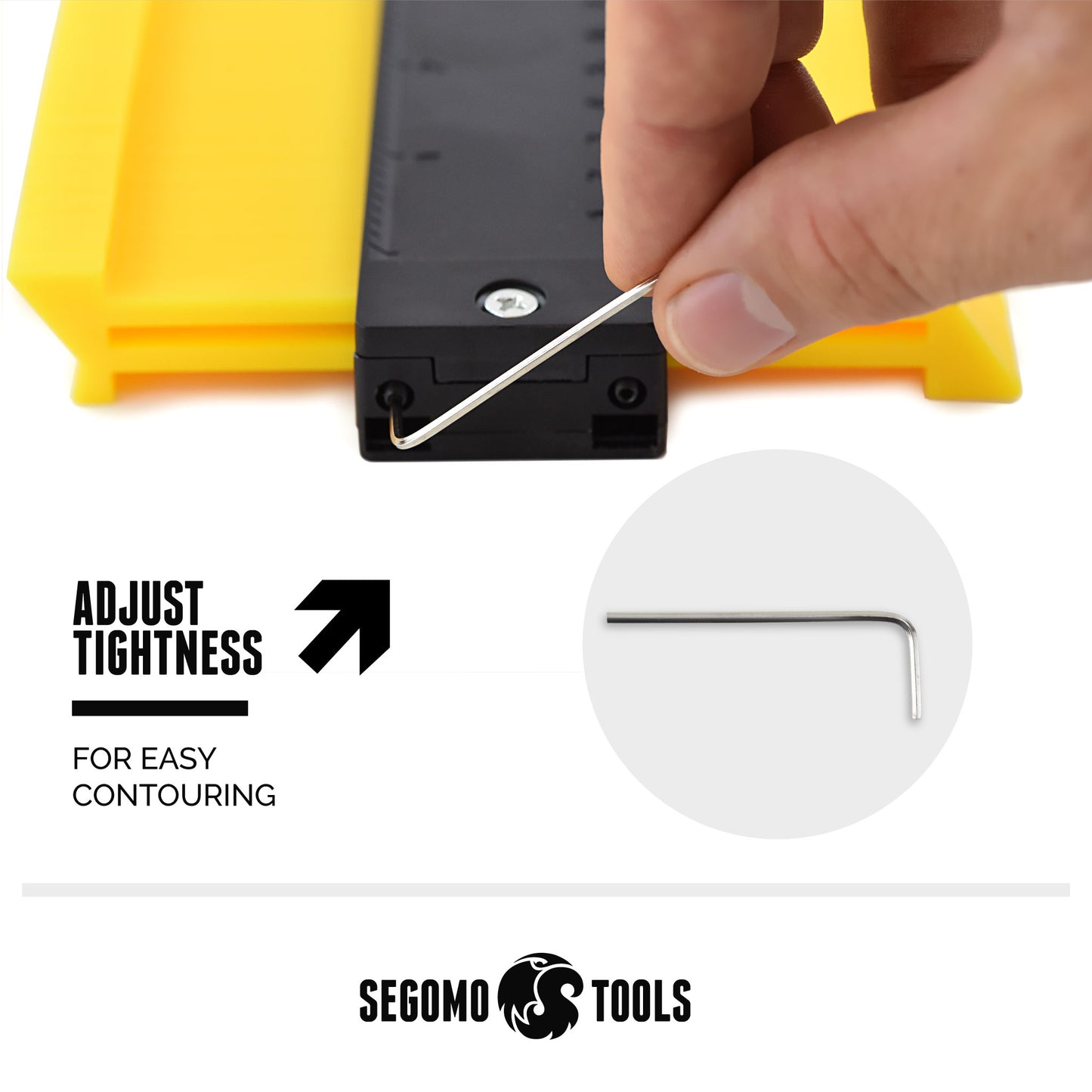 Simple and easy to use: 1. Adjust contour gauge tightness. 2. Copy contour shape. 3. Lock contour. 4. Cut or trace shape.