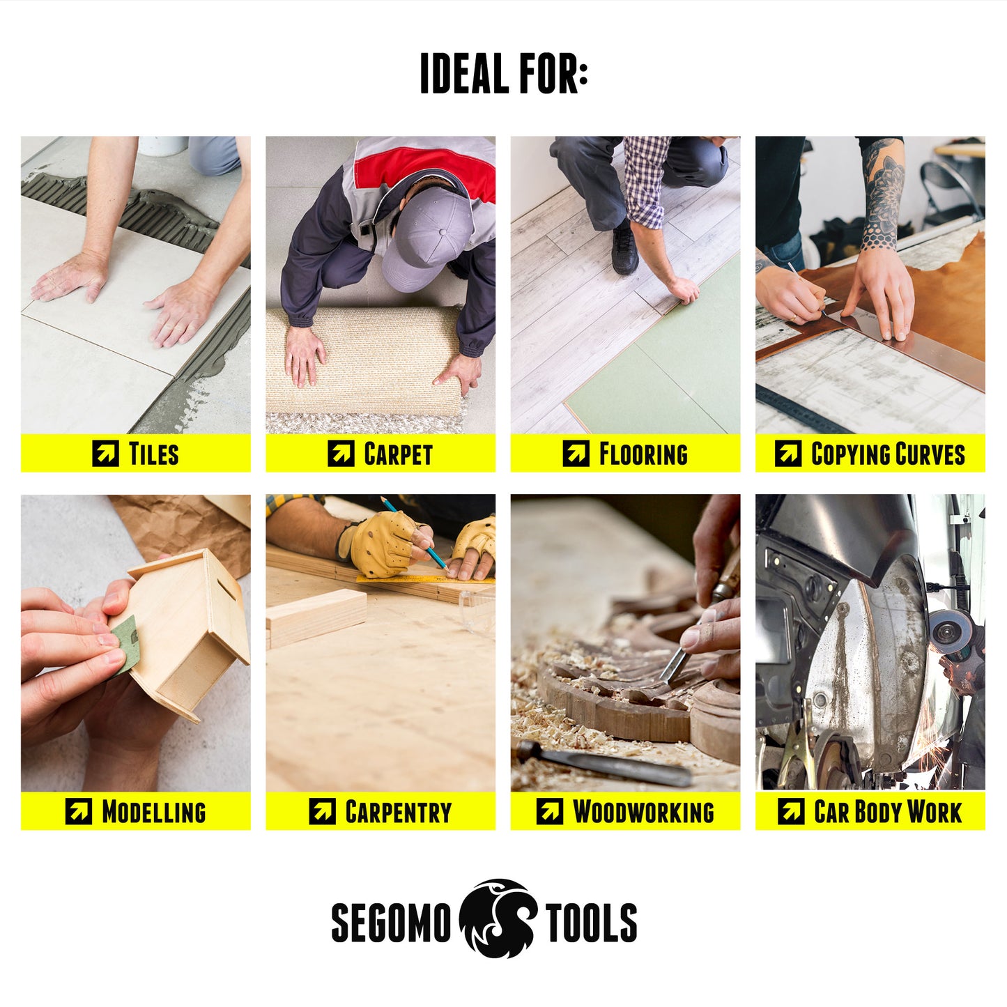Ideal for fitting tiles, carpet, laminating, flooring, moulding, copying curves, modelling, carpentry, woodworking, metal sheeting, stainless steel, car body work or any job where duplication is essential.