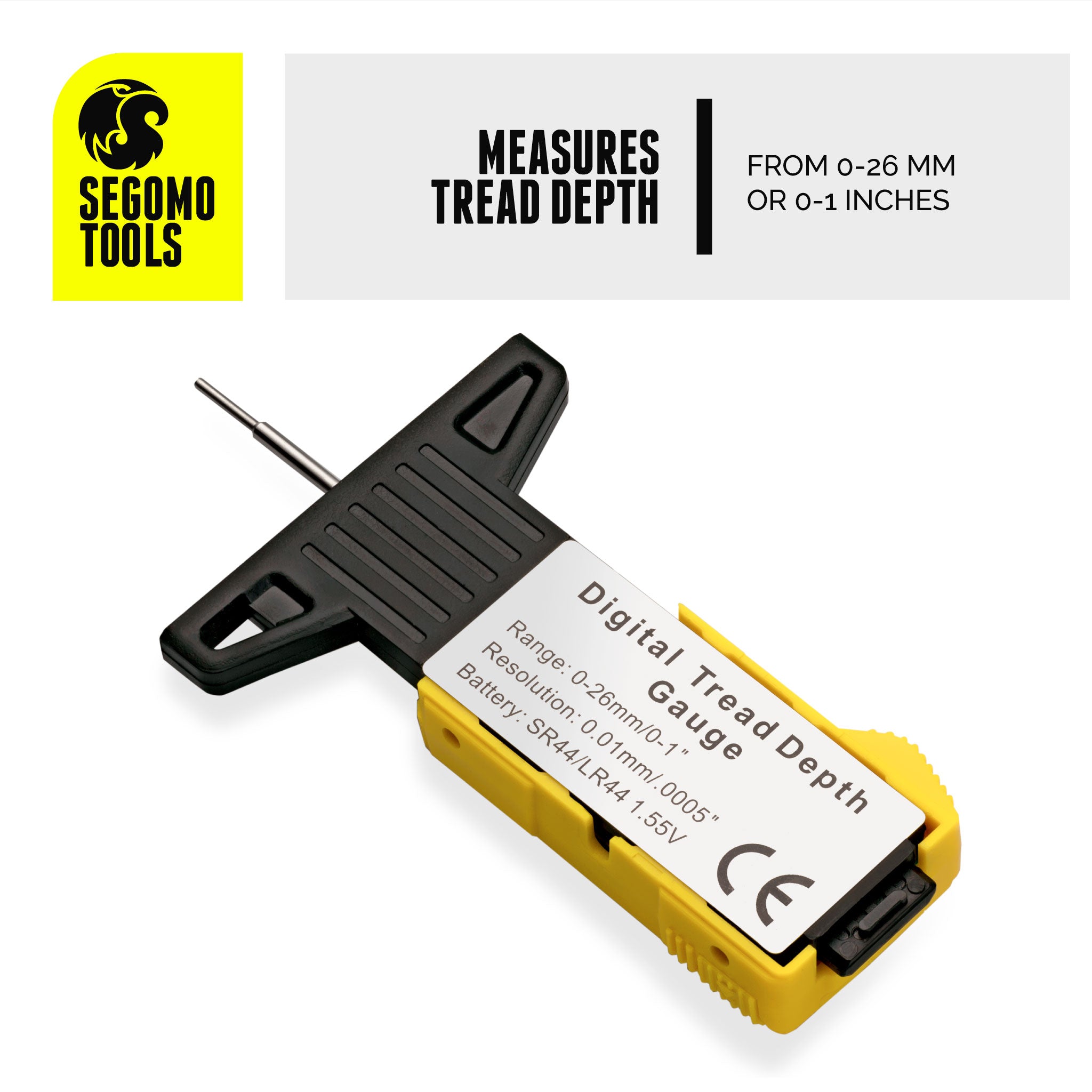 Segomo Tools LCD Digital Tire Tread Depth Gauge Measuring Tool with Millimeter & Inch Conversion (0-26mm/0-1 inch) - DTTDG01