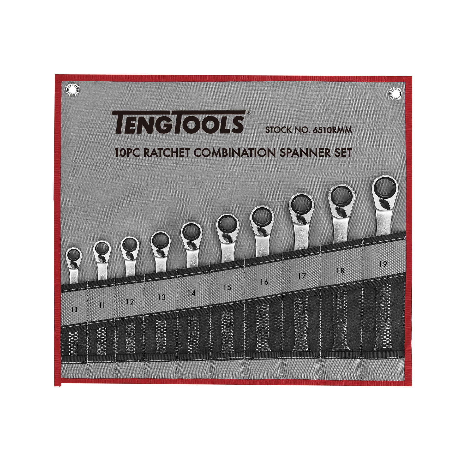 Teng Tools 10 Piece Ratcheting Combination Wrench Set (10mm - 19mm) - 6510RMM