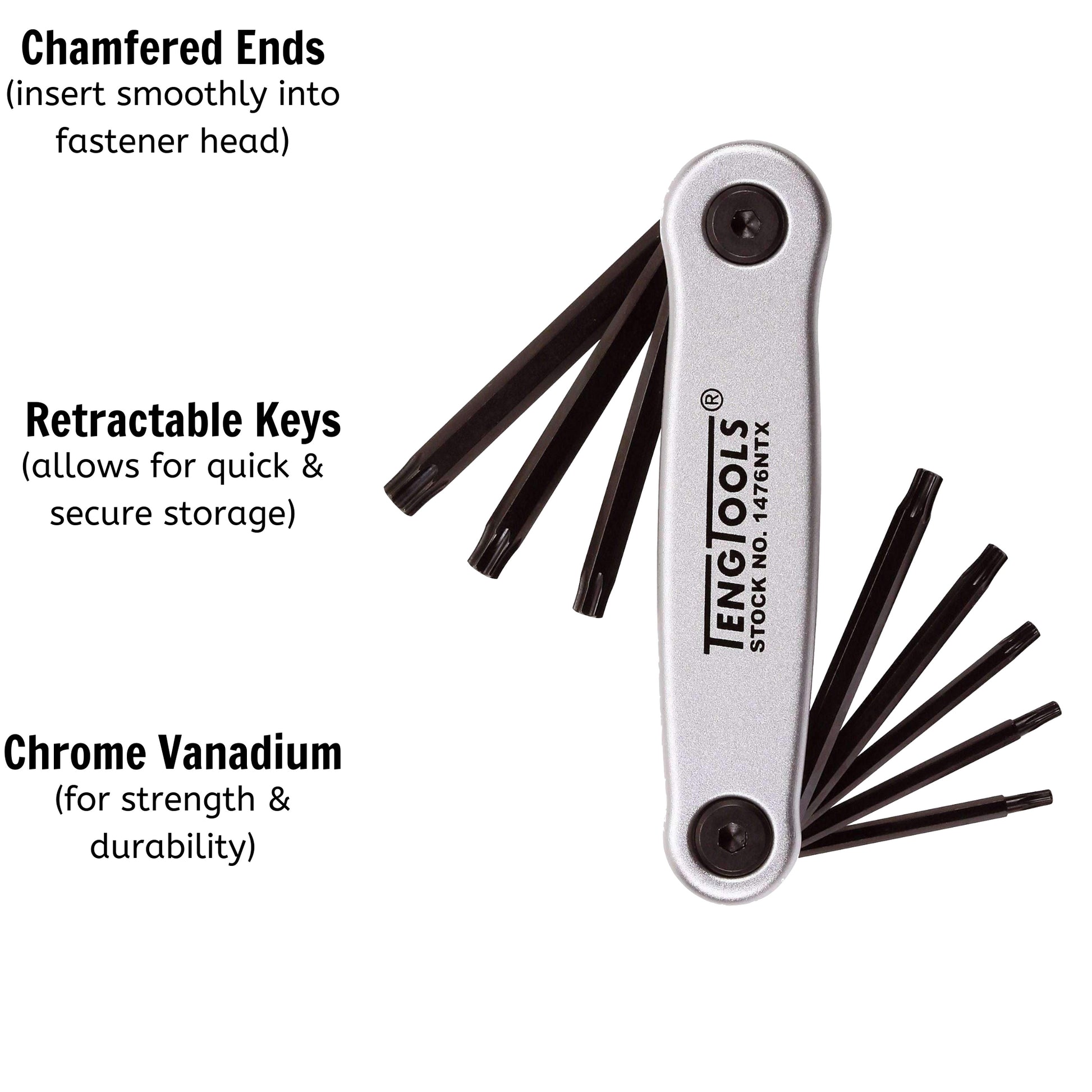 Teng Tools 8 Piece Industrial Grade Retractable Torx Key / Allen Wrench Set (TX9 - TX40) - 1476NTX