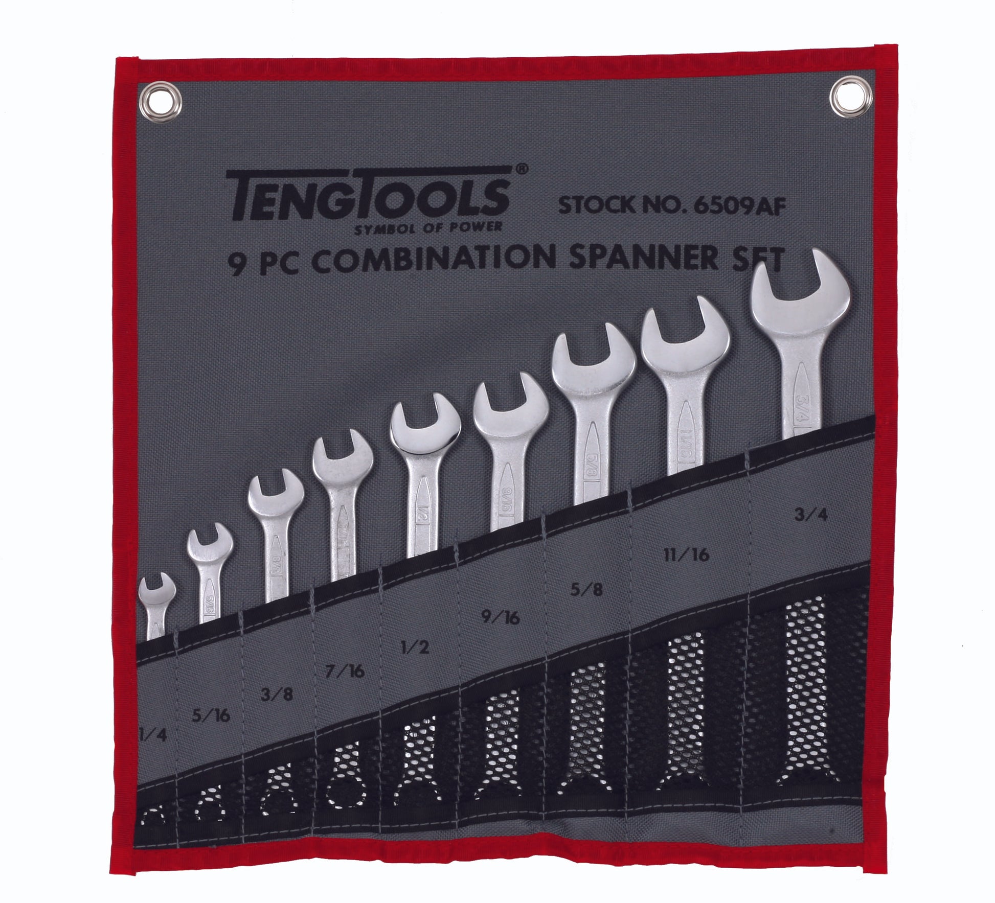 Teng Tools 9 Piece 12 Point SAE Combination Wrench Set (1/4 Inch - 3/4 Inch) - 6509AF